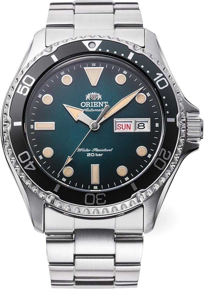 L’Orient Kamasu II è un orologio automatico sportivo con quadrante sfumato, vetro zaffiro e impermeabilità fino a 200 metri. Monta un movimento meccanico affidabile, ha datario